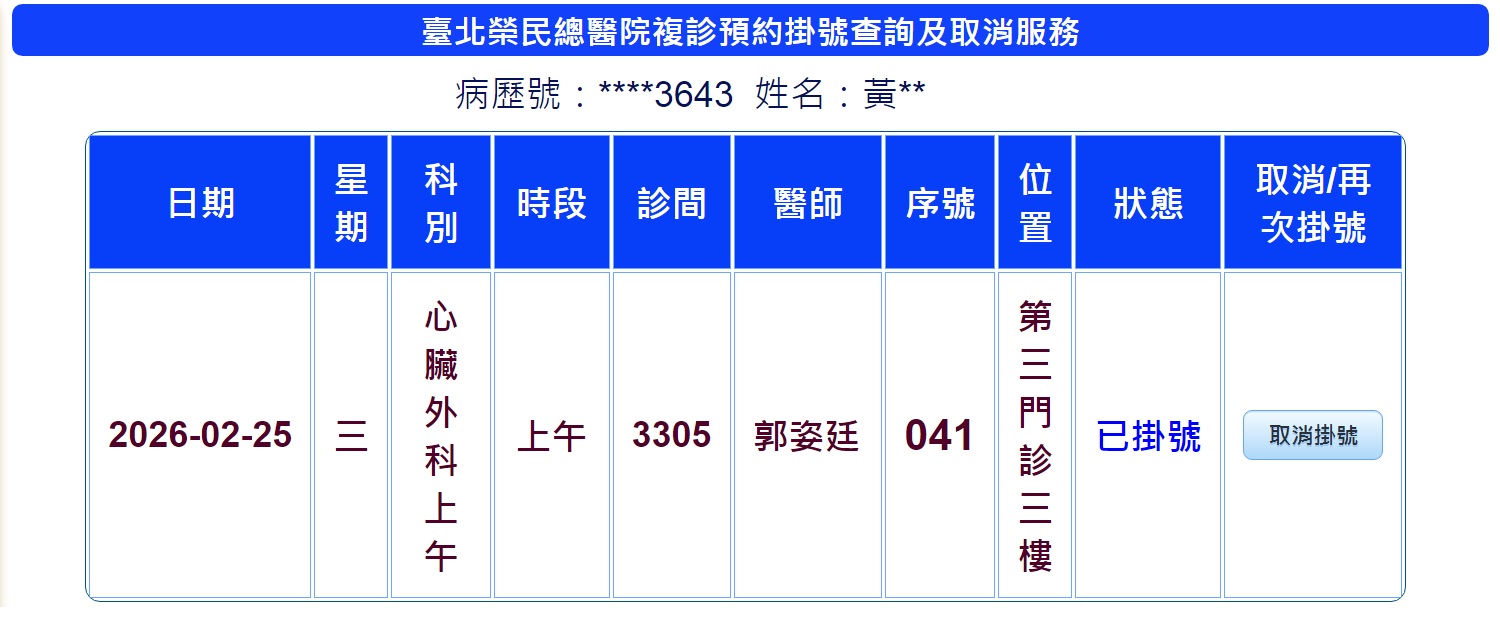 榮總掛號資料